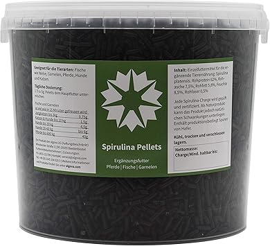 Algova Spirulina Pellets Natur Futter Fur Zierfische Meerwasser Und Susswasser Garnelen Welse Koi Pferde Hunde Katzen Hoher Carotinoid Vitamin Mineralstoff Gehalt Barf 2 5mm 3 5 Kg Amazon De Haustier