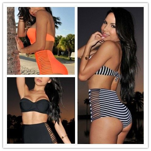 Bowknot Coral Summer Bikini Bustier Top High Waisted Spandex Panties Swimsuit Hz Ebay