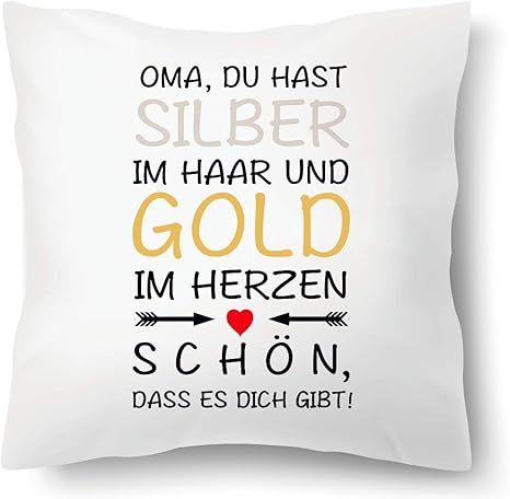 Farbwuselei Kissen Mit Spruch Oma Du Hast Silber Im Haar Und Gold Im Herzen Schon Dass Es Dich Gibt Kissenhulle Inlay Kissenbezug Geschenk Amazon De Kuche Haushalt