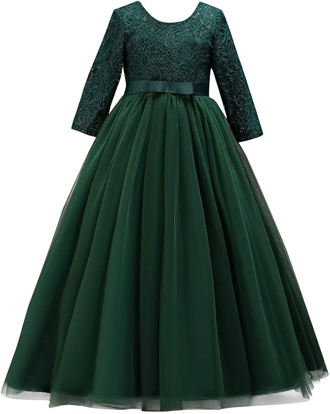 Amphia Madchen Kleider Prinzessin Hochzeit Abendkleid Lange Rocke Kinder Langarmlig Zuruck V Ausschnitt Bogen Mesh Rock Kleid Kleid Rock 4j 9j Amazon De Bekleidung