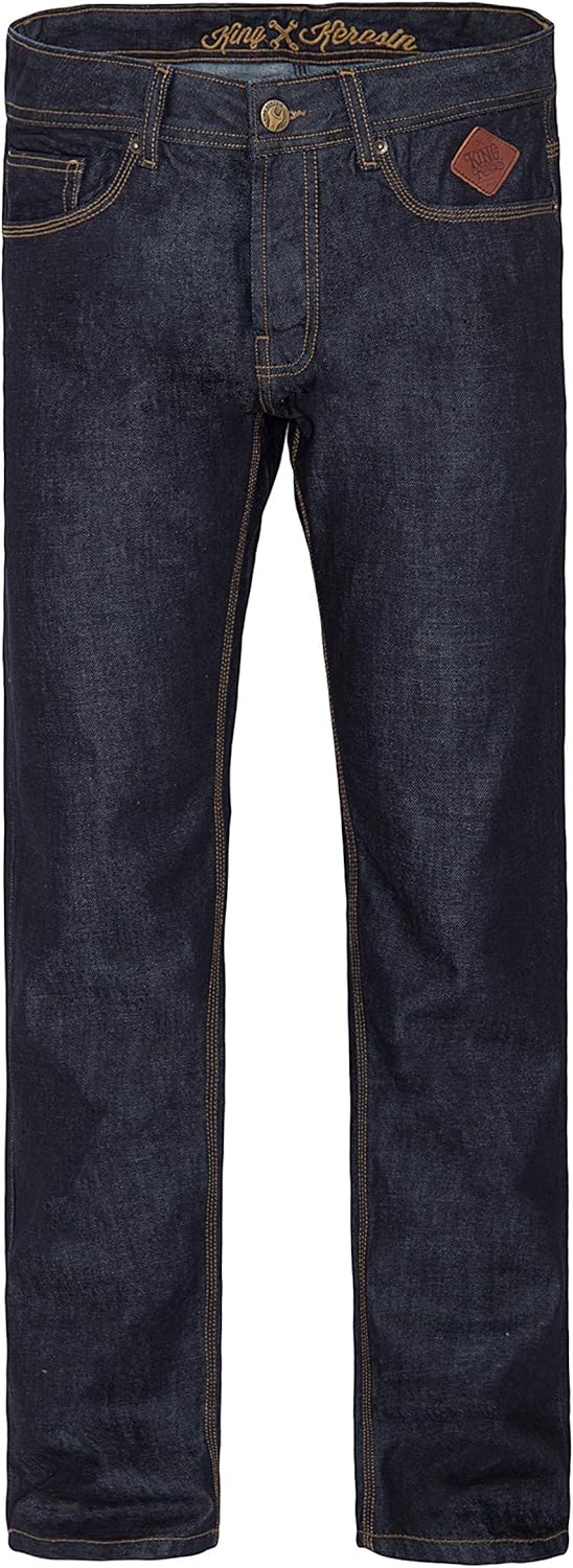 King Kerosin Herren Slim Fit Jeans Mit Lederpaspelierungen Und Knopfen Fur Hosentrager Robin Abgesteppte Kante Slim