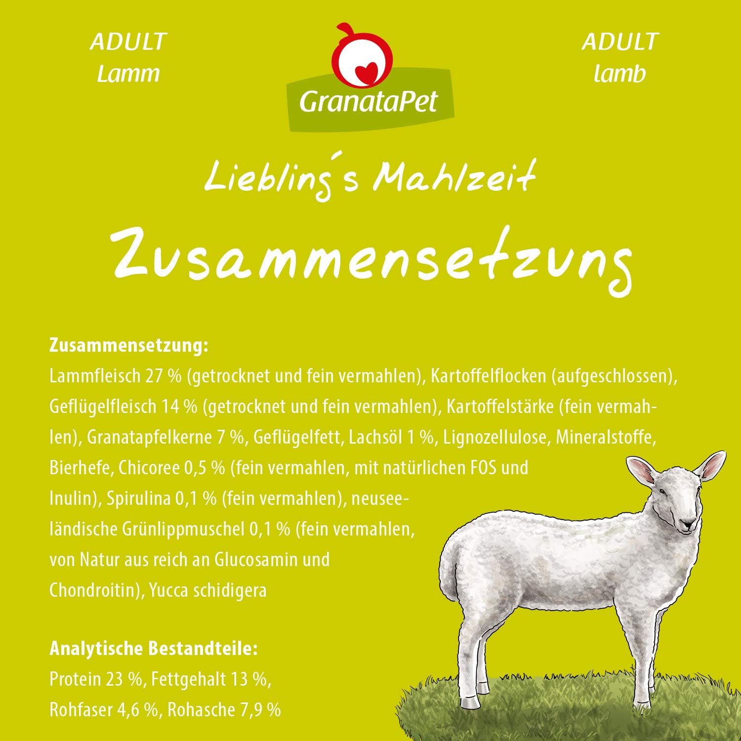 Granatapet Liebling S Mahlzeit Adult Mit Schmackhaftem Lamm 10kg Getreidefrei