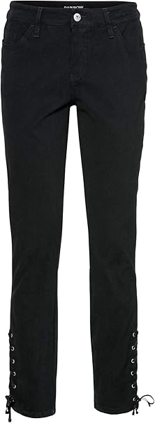Bonprix Schmale Hose Mit Schnurungen Am Seitlichen Saum Schwarz Lang 50 Fur Damen Amazon De Bekleidung