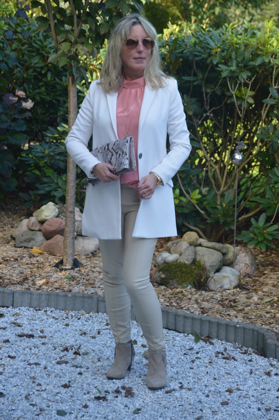 Weisser Longblazer Und Rosa Seidenbluse Zur Beigen Lederimitat Hose Ari Sunshine