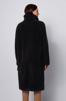 Boss Long Relaxed Fit Teddy Coat With Stand Collar
