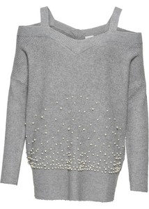 Pullover Mit Perlen Und Cut Outs Gr 40 42 Hellgrau Damen Strickpullover Neu Ebay
