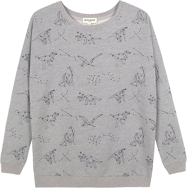 Lavielente Damen Baumwolle Langarm Graphic Sweatshirt Rundhals Pullover Grau Klein Amazon De Bekleidung