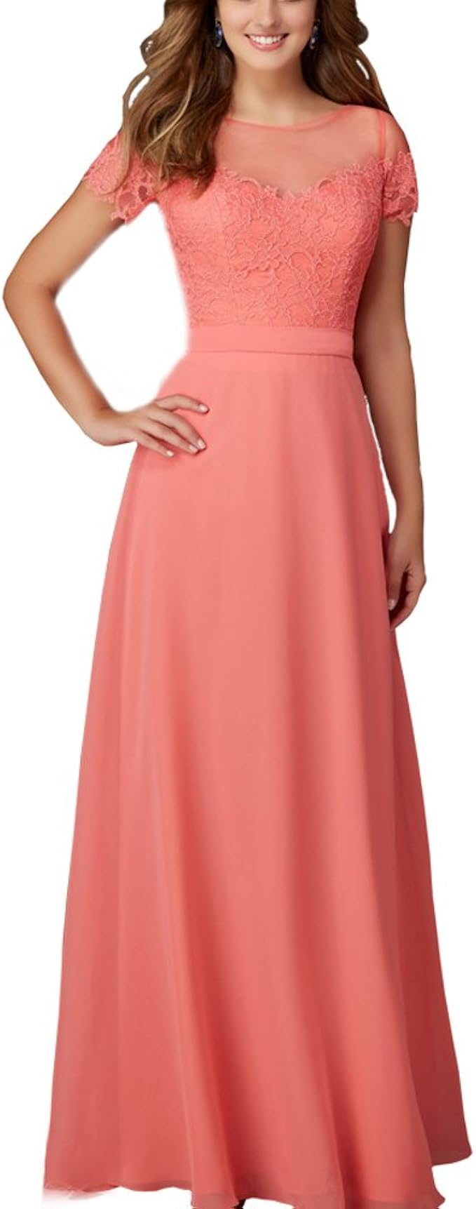 Tiaobug Elegant Chiffon Damen Kleider Lange Brautjungfer Blumenspitze Cocktailkleid Party Festlich Hochzeit Abendkleid Gr 34 46 Amazon De Bekleidung