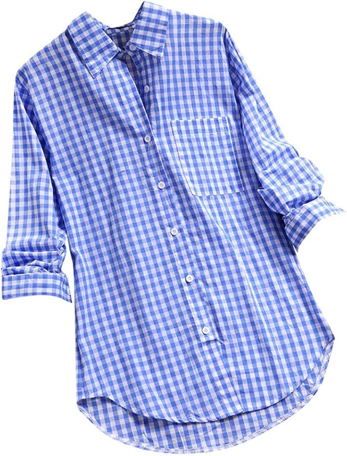 Vecdy Damen Pullover Frauen Bluse Lose Karierte Langarmtaschen In Ubergrosse Tanic Bluse Mode Tops Sweatshirt Casual Tshirts Amazon De Bekleidung