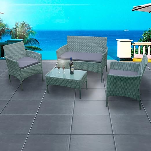 Amazon De 4 Luxus Design Rattan Lounge Weave Garten Mobel Terrasse Wintergarten Sofa Grau