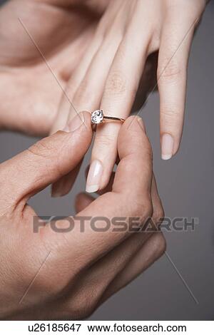 Mann Plazierung Verlobungsring Auf Frau Finger Nahaufnahme Hande Stock Foto U Fotosearch