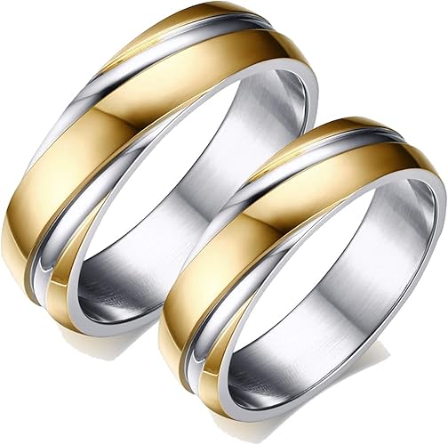 Sonmo 2 Stuck Frau Mann Edelstahl Paarringe Edelstahl Matt Trauringe Bicolor Fur Paare Silber Gold Frau 49 15 6 Mann 52 16 6 Amazon De Schmuck