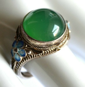 China Silver Ring Emaille Und Gruner Stein Email Blume Silber Ebay