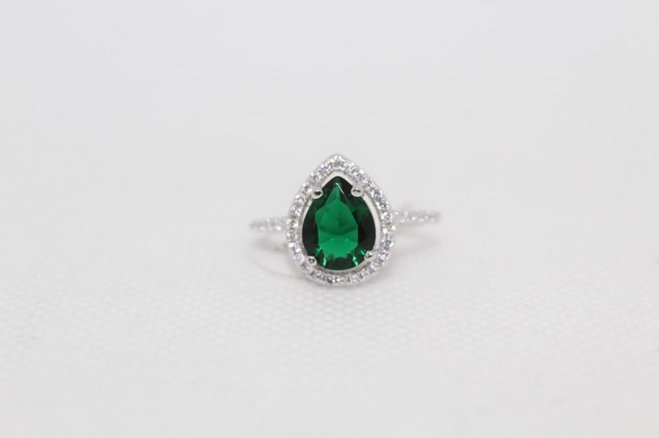 Silber Ring 925 Mit Grunem Stein Und Zirkonia Weiss