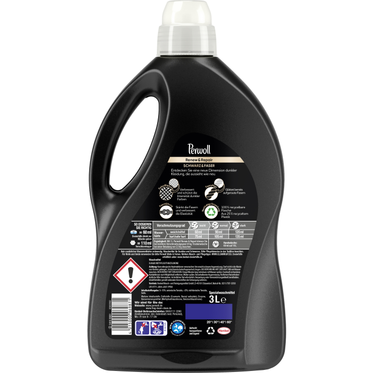 Perwoll Schwarz Faser Renew Advanced Waschmittel 3 Liter Flasche Fur Ca 50 Waschladungen Online Kaufen Hygi De