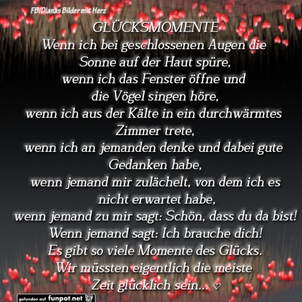 Zufriedenheit ist keine Frage von zarten Glücksmomenten (© Monika Minder) Glück Nun sind vor meines Glückes Stimme alle Sehnsuchtsvögel weggeflogen Ich schaue still den Wolken zu, die über meinem Fenster in die Bläue jagen – Sie locken nicht mehr, mich zu fernen Küsten fortzutragen, Wie einst, da Sterne, Wind und Sonne. Erkunde Eve Jades Pinnwand „Sprüche“ auf Weitere Ideen zu Sprüche, Zitate, Sprüche zitate. 1000 Glücksmomente Langenscheidt, Florian ISBN Kostenloser Versand für alle Bücher mit Versand und Verkauf duch Amazon.