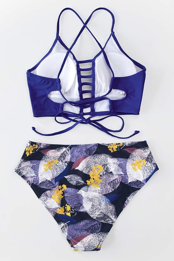 Amazon Com Cupshe Women S Bikini Swimsuit Floral Print Lace Up Strappy Two Piece Bathing Suit Clothing
