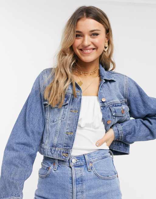 New Look Kurze Kurze Jeansjacke In Verwaschenem Mittelblau Asos