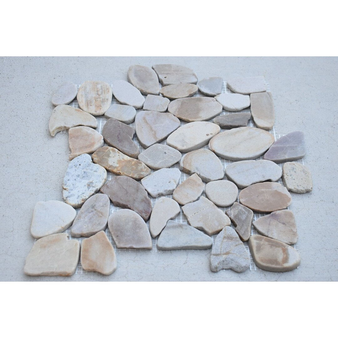 Fp 108 Sandy Beach 12 X 12 Interlocking Natural River Rock Tan Beige Polished On Sale Overstock