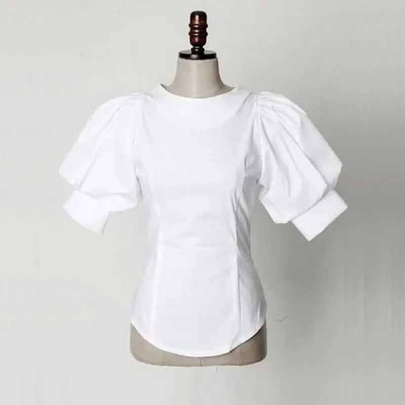 Vintage Puff Laterne Hulse Shirt Womens Casual Zuruck Tasten Oansatz Lose Kurzarm Tops Damen Baumwolle Weisse Bluse White Blouse Shirt Womentops Ladies Aliexpress
