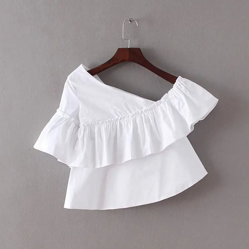 Amerikanische Mode 16 Frauen Sommer Elegante Weisse Bluse Unregelmassige Slash Hals Rusche Kurzarm Casual Marke Tops Shirts Elegant White Blouses White Blousewhite Blouse Fashion Aliexpress
