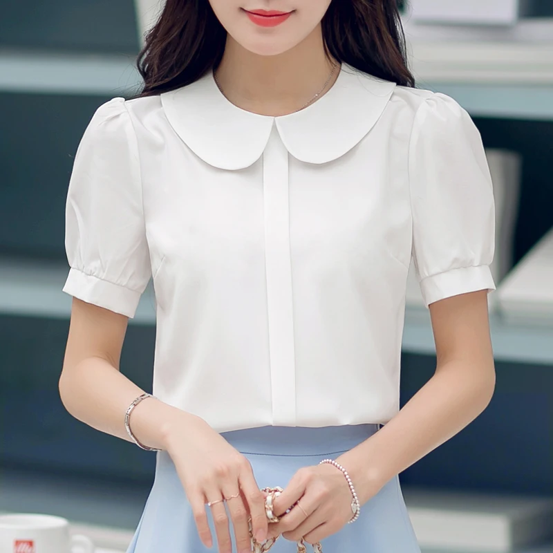 Sommer Weisse Bluse Kurzarm Arbeits Halb Hulsen Lose Montage Kleid Hemd Han Fan Frauen Ol 50 White Blouse Short Sleeve Blouses Short Sleeveswhite Blouse Aliexpress