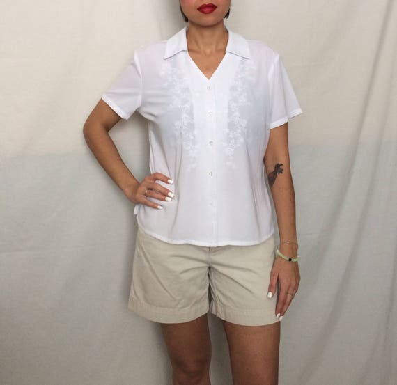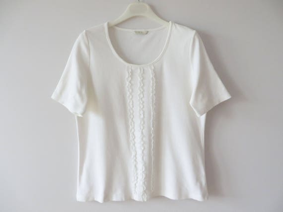 Vintage 80er Jahre Top Weiss Sommer Bluse Kurzarm Oben Weisse Etsy