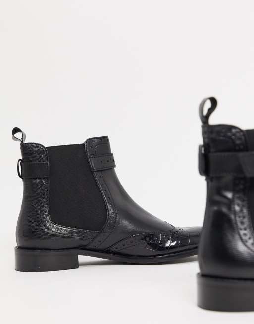 Asos Design Astrid Schwarze Leder Stiefel Im Military Look Asos