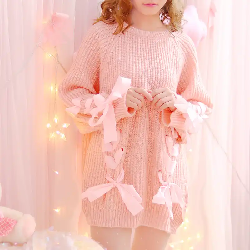 Herbst Japanischen Frauen Pullover Spitze Up Bander Junges Madchen Mode Reizende Nette Stricken Hemd Rosa Kawaii Lange Pullover Fur Dame Pullover Aliexpress