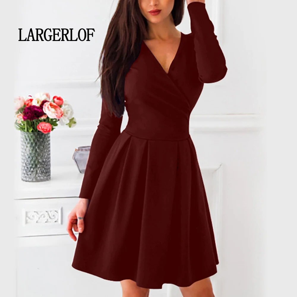 Largerlof Frauen Kleider Freizeit Eine Linie Kleid V Ausschnitt Langarm Elegante Sommer Kleid 19 Ds Kleider Aliexpress
