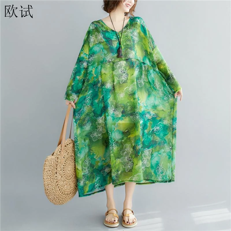 Plus Grosse Chiffon Mori Madchen Grun Kleid Frauen Fruhling Lose Beilaufige Damen Kleider Langarm Floral Print Koreanische Kleid Robe Kleider Aliexpress