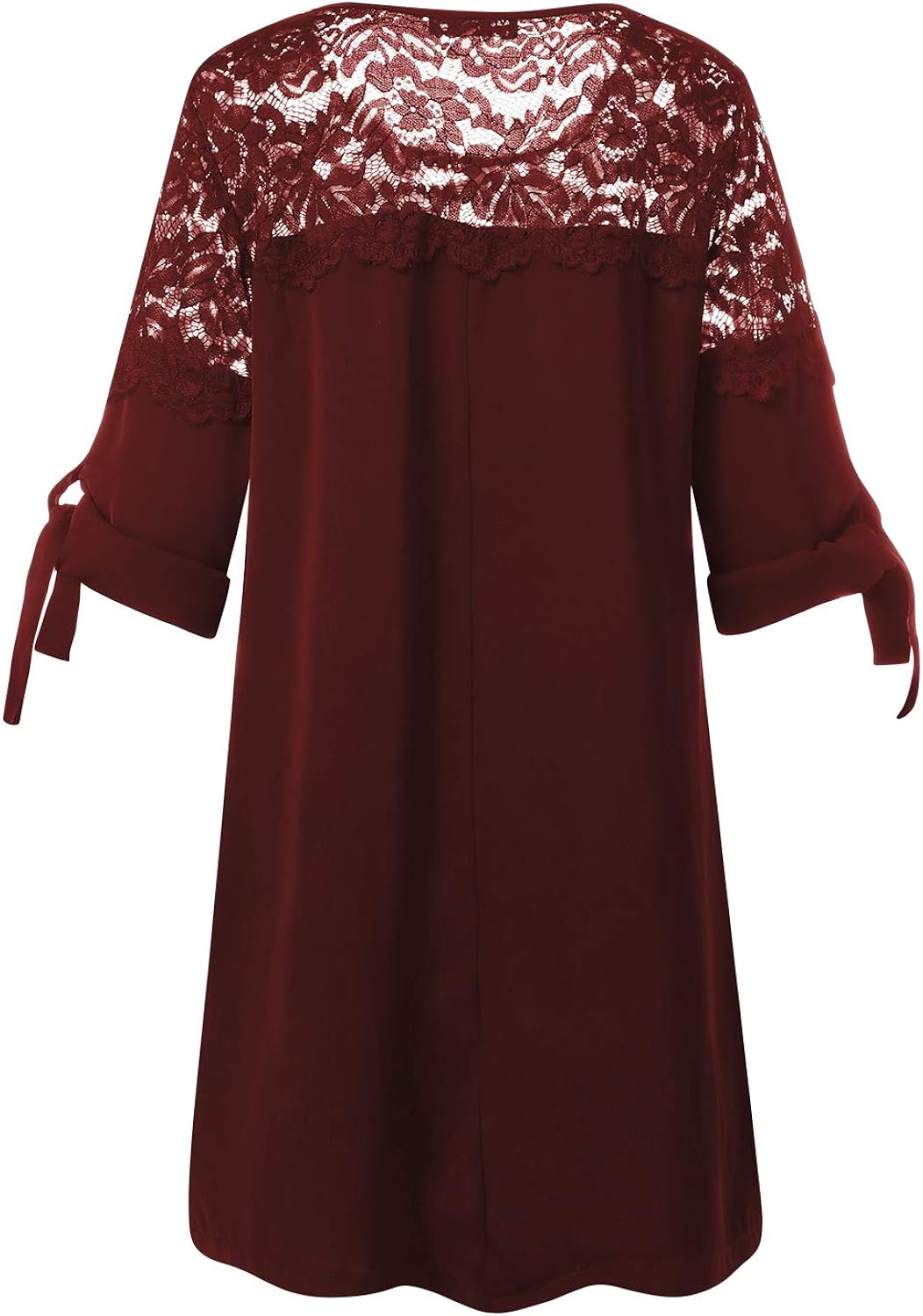 Parabler Damen Elegante Kleider Langarm Spitzenkleid Partykleid Cocktailkleid Abendkleid Festliches Kleid Rundhals A Linie Knielang Kleider Bekleidung