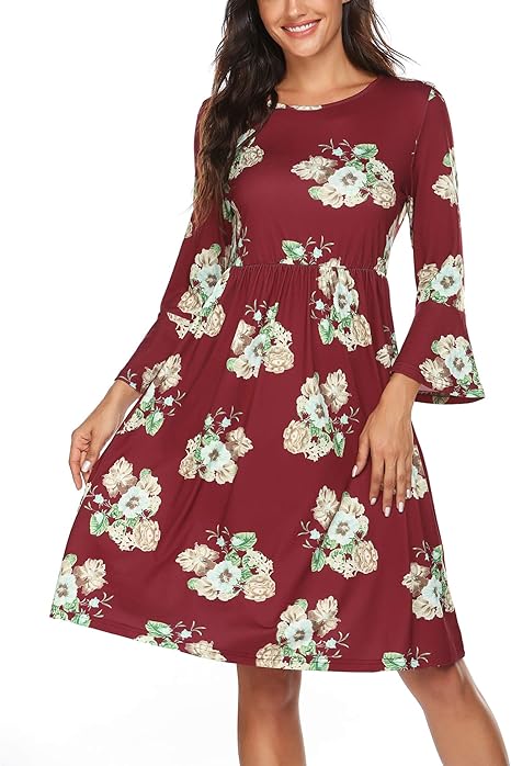 Didk Damen Kleid Elegant Langarm Blumen Kleider Kurz Knielang Partykleid Casual Fur Herbst Fruhling Amazon De Bekleidung