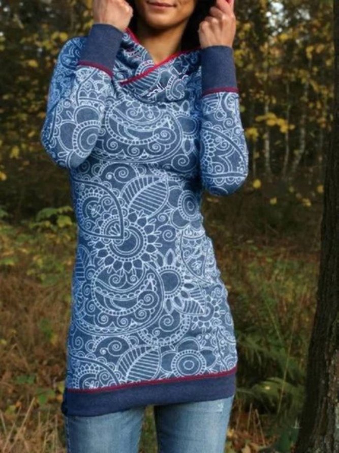 Tribal Print Kapuze Langarm Damen Kleider Kleider Langarm Tribal Kleider Baumwollmischung Mit Blumenmuster Kleider Modetalente