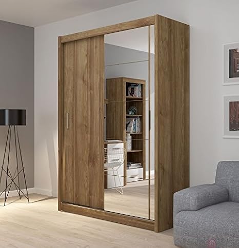 Fado Spiegel Kleiderschrank Mit 2 Schrank Mit Schiebeturen Spiegel Einlegeboden Zum Aufhangen Kleiderstange Schlafzimmer Flur Mobel Amazon De Kuche Haushalt