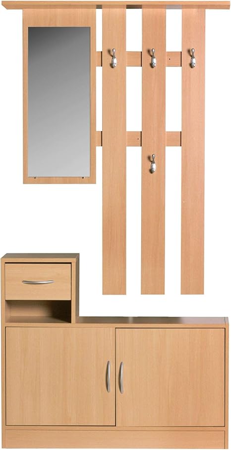 Finebuy Sero Garderobe Komplett Zum Aufhangen Flur Mit Spiegel Garderoben Set Wandgarderobe Mit Hut Ablage Holz Mit Garderobenhaken Hangend Mit Unter Schrank Platzsparend 90cm Breit 2 Teilig Buche Amazon De Kuche Haushalt
