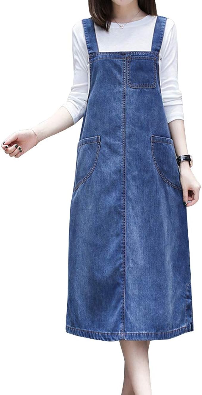 Chen Damen Langes Jeanskleid Lose Latzrock Jeansrock Tragerkleid Latzkleid Freizeitkleid Grosse Grosse Amazon De Bekleidung