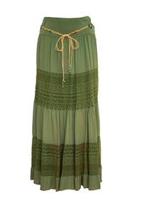 Rock Hippie Boho Stufenrock Mit Spitze Wandelbarer Maxirock Hippie Chic Flamencorock Sommerkleid Grasgrun