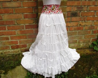 Damen Sommer Lang Rock Stufenrock Hippy Boho Maxirock Glocker Doppellagig Weiss Damenrocke Aus Spitze Kleidung Accessoires