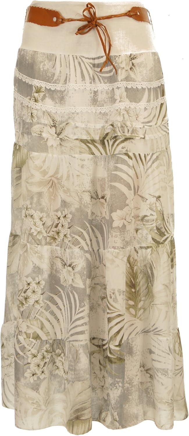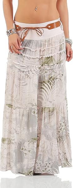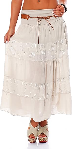 Damen Rock Strandrock Maxirock Stufenrock Lang Am 8 Beige Amazon De Bekleidung