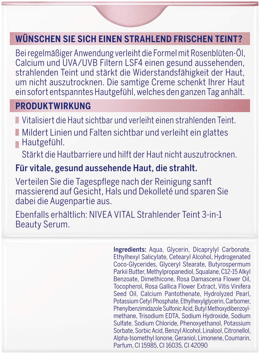 Nivea Vital Strahlender Teint Reichhaltige espflege Fur Reife Haut 50 Ml Feuchtigkeitspflege Mit Naturlichem Rosenbluten Ol Und Calcium Fur Gestarkte Haut Amazon De Beauty