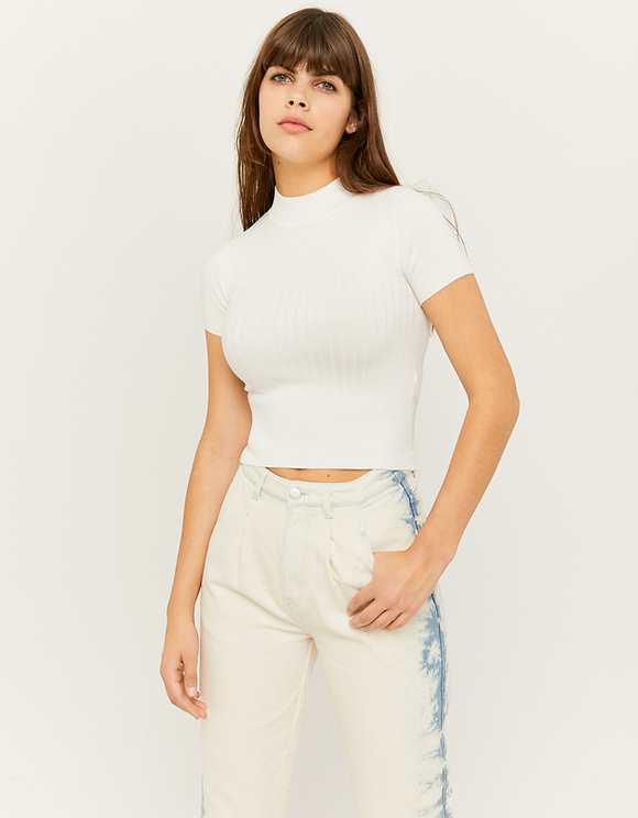 Weisses T Shirt Aus Strick Mit Stehkragen Tally Weijl Online Shop