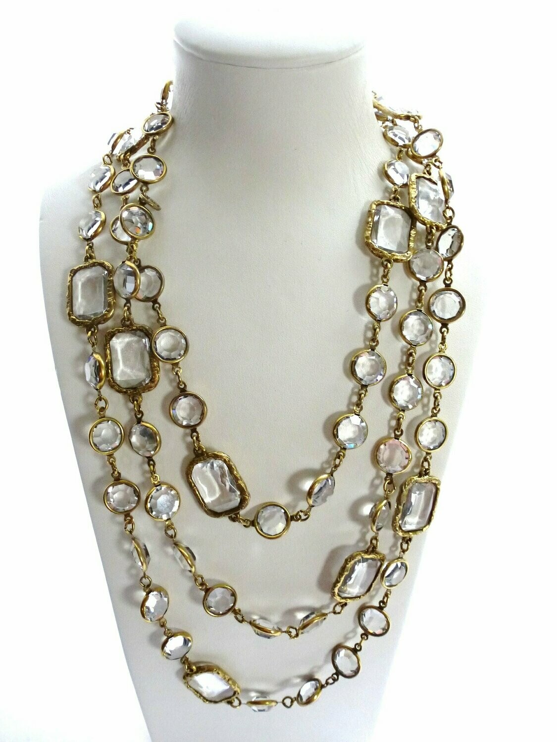 Aprococo Vintage Chanel 3 Reihige Sautoir Kette Mit Klaren Zargenfassung Kristallen Silber