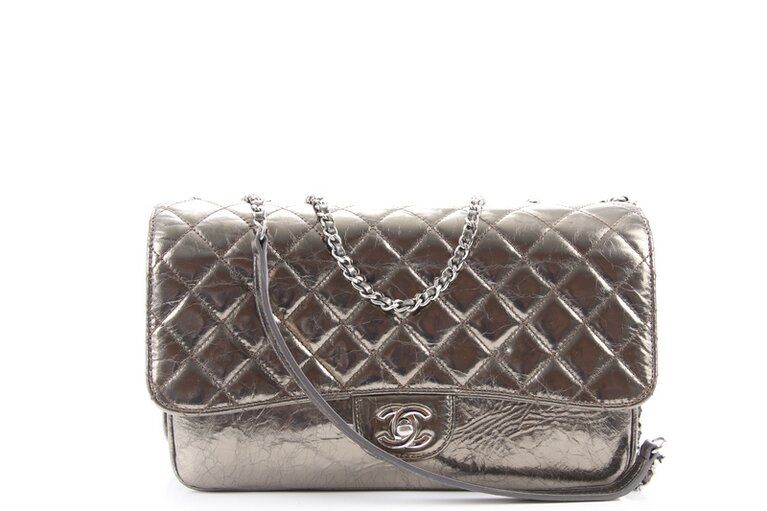 Shopper Glanzendes Kalbsleder In Vintage Optik Goldfarbenes Metall Silberfarbenes Metall Metall In Ruthenium Optik Chanel