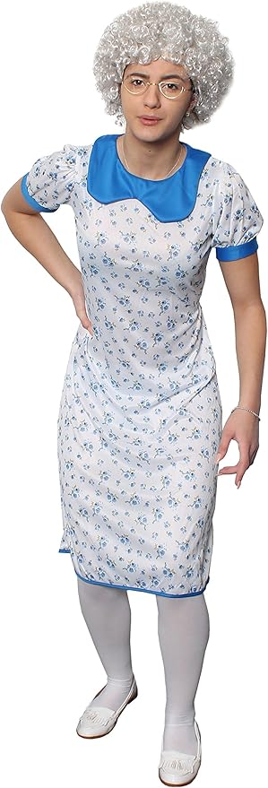 I Love Fancy Dress Ltd Grossmutter Oma Kinder Kostum Verkleidung Fasching Karneval Buchwochen 2 Teiliges Weisses Kleid Blauen Blumen Eine Graue Krause Perucke Small Amazon De Spielzeug
