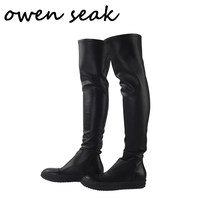 Owen Seak Manner Schuhe Uber Knie Hohe Stiefel Luxus Trainer Schaffell Leder Winter Stiefel Casual Schnee Wohnungen Schwarz Grosse Grosse Stiefel Aliexpress