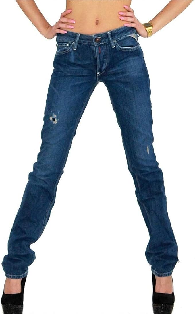 Replay Damen Jeans Hose W01 07 000 Cutted Used Mit Lochern Dunkelblau Amazon De Bekleidung