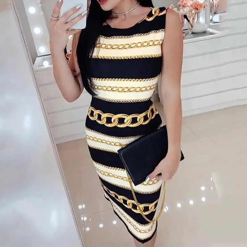 Elegante Frauen Bleistift Kleid Oansatz Armelloses Gestreiftes Drucken Midi Kleid Sommer Bodycon Hufte Kleid Schlank Partei Engen Kleid Dame Kleid Kleider Aliexpress