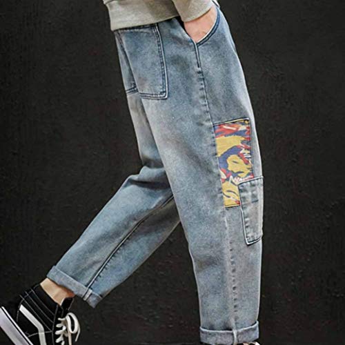 Herren Lockere Jeans Taschen Hip Hop Denim Hose Gerade Bein Hose Streetwear Blau Ebay