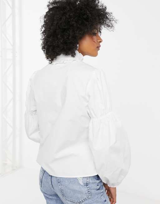 Monki Hoch Geschlossene Weisse Bluse Mit Ruschen Asos